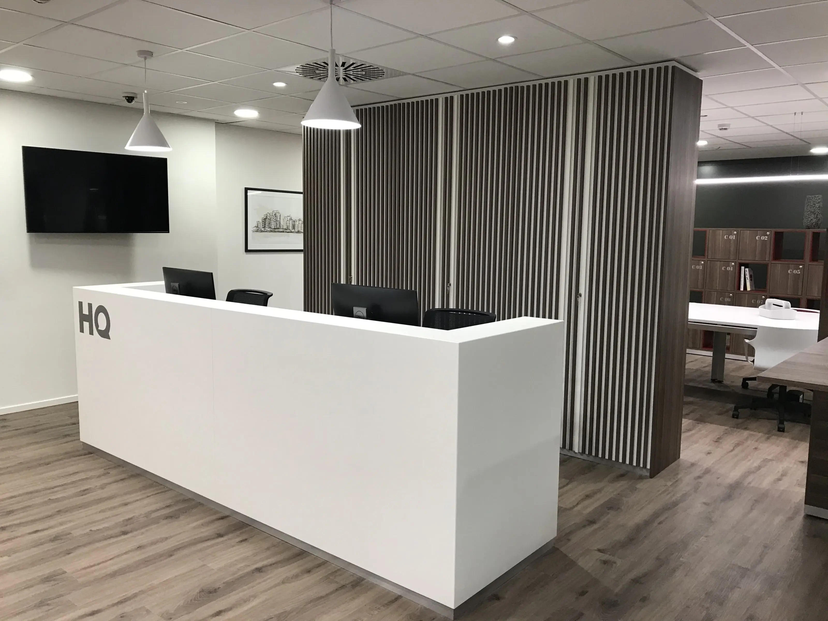 Design & Build des gesamten Bereichs: Einrichtung von Büros und Gemeinschaftsräumen.