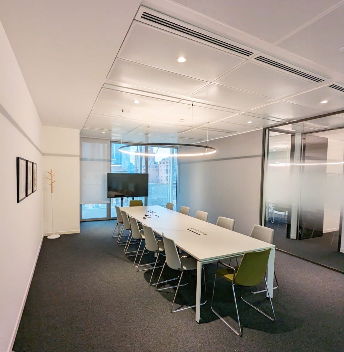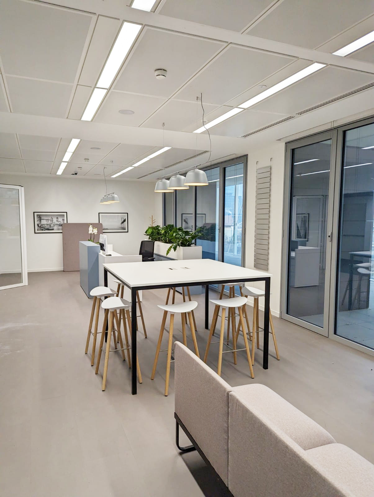 Co-working space. Creation of meeting rooms, business club areas and offices of various sizes. Design & Build of the interior space.